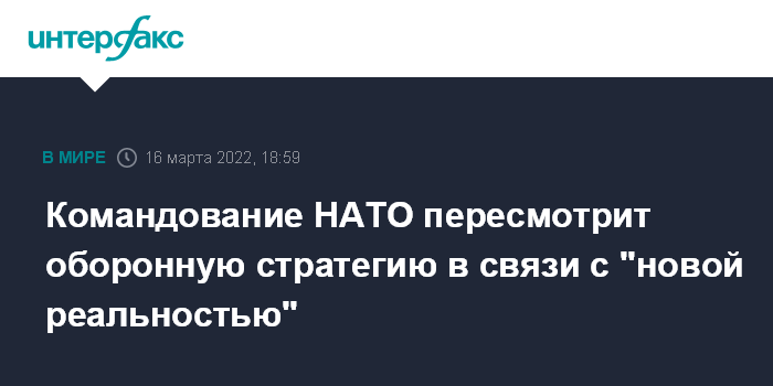 Москва. 16 марта. INTERFAX.RU - Министры обороны стран НАТО распорядились, чтобы командование альянса пересмотрело оборонную стратегию на фоне "новой реальности" с безопасностью в регионе, заявил в среду генсек НАТО Йенс Столтенберг после встречи министров.