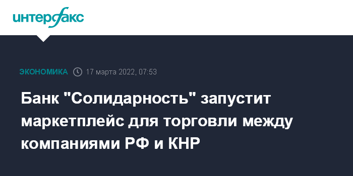 Банк "Солидарность" запустит маркетплейс для торговли между компаниями РФ и КНР