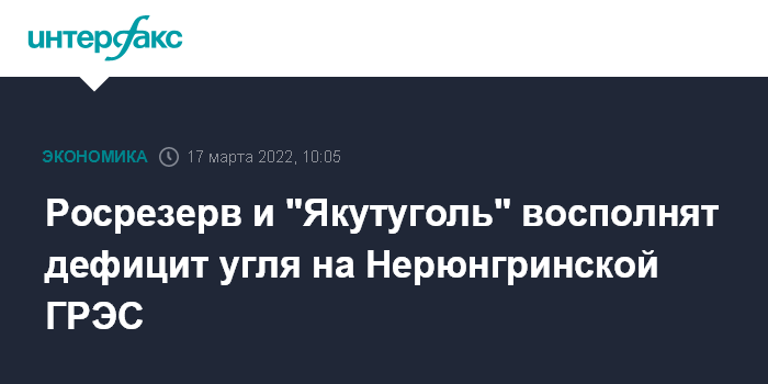 Москва. 17 марта. INTERFAX.RU - Росрезерв и "Якутуголь" направят дополнительный объем угля для нужд Нерюнгринской ГРЭС (входит в "Дальневосточную генерирующую компанию, ДГК), сообщила пресс-служба главы и правительства Якутии.