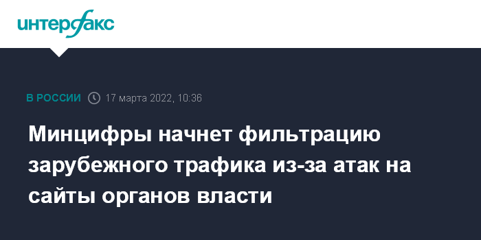 Минцифры начнет фильтрацию зарубежного трафика из-за атак на сайты органов власти