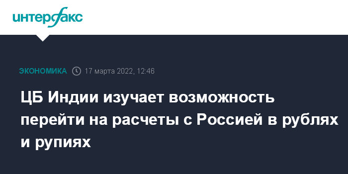 ЦБ Индии изучает возможность перейти на расчеты с Россией в рублях и рупиях
