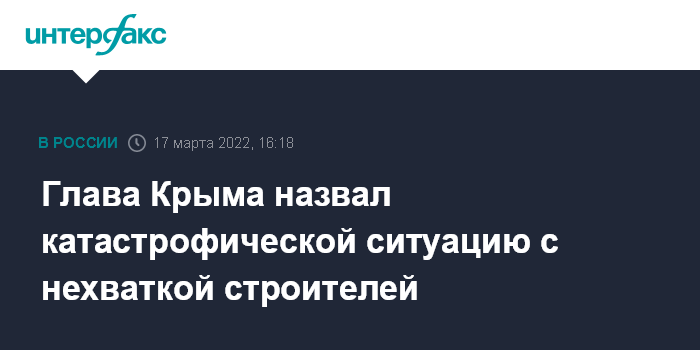"У нас, честно, не хватает рабочих рук. (...) Потребность в строителях сегодня - до 10 тыс., катастрофическая ситуация. Мы, в принципе, сегодня все возможности определяем только из возможностей физического освоения средств в данном случае", - сказал Аксенов в четверг в ходе совещания по социально-экономическому развитию Крыма и Севастополя.