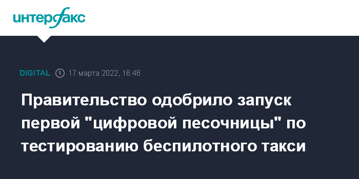 Правительство одобрило запуск первой "цифровой песочницы" по тестированию беспилотного такси