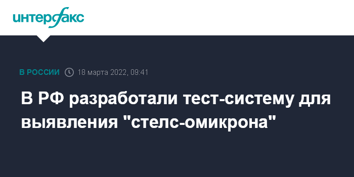 Москва. 18 марта. INTERFAX.RU - Центр стратегического планирования и управления медико-биологическими рисками здоровью Федерального медико-биологического агентства (ФМБА) разработал и получил регистрационное удостоверение на тест-систему, способную выявить генетические варианты штамма COVID-19 "омикрон" с определением подварианта "стелс" и "дельты", сообщили в пресс-службе агентства.