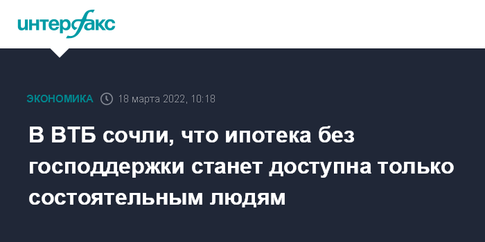 В ВТБ сочли, что ипотека без господдержки станет доступна только состоятельным людям