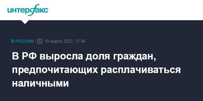 Доля россиян, преимущественно расплачивающихся наличными, выросла с 25% до 30%.