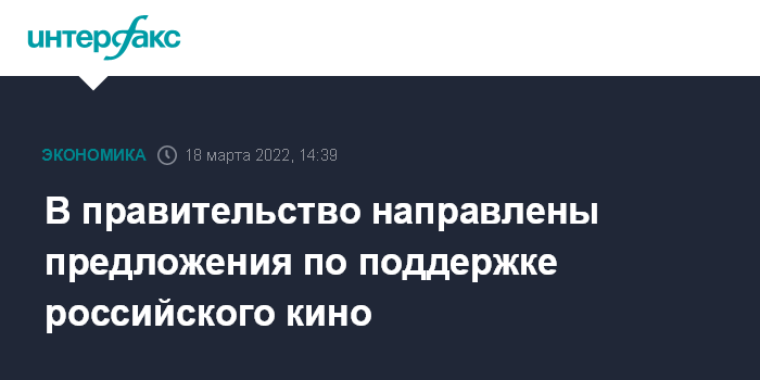 Москва. 18 марта. INTERFAX.RU - В правительство направлены предложения по мерам финансовой и нефинансовой поддержке российского кинематографа и киносетей, ответа чиновники еще не дали, сообщил "Интерфаксу" советник президента по культуре Владимир Толстой.