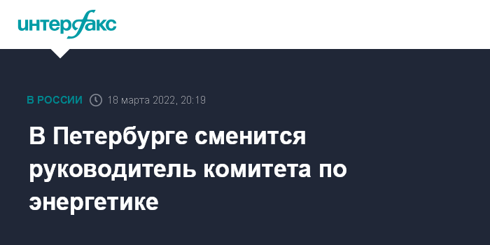 Москва. 18 марта. INTERFAX.RU - Председатель комитета по энергетике Петербурга Андрей Бондарчук с 21 марта оставит этот пост и перейдет на новое место работы, сообщили в пятницу в пресс-службе администрации губернатора региона.