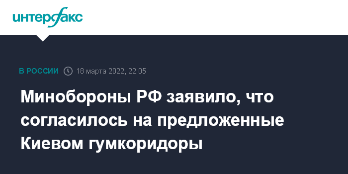 При этом он отметил, что "из предложенных нами маршрутов украинские власти согласовали только три, при этом, ни один гуманитарный коридор в Российскую Федерацию, уже по озвученным раннее причинам, в основе которых полное безразличие к своему народу, официальным Киевом не подтвержден".