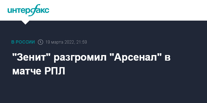 Москва. 19 марта. INTERFAX.RU - Футболисты санкт-петербургского "Зенита" оказались сильнее соперников из тульского "Арсенала" в матче 22-го тура Тинькофф - Российской премьер-лиги.