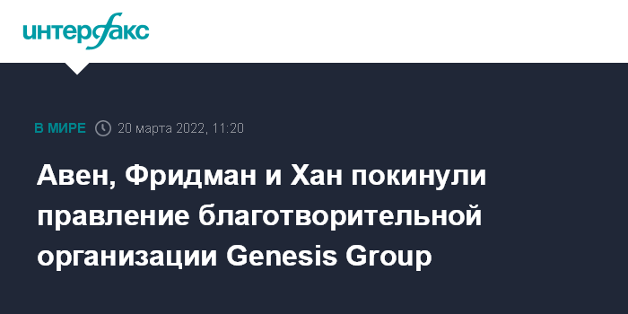 Авен, Фридман и Хан покинули правление благотворительной организации Genesis Group