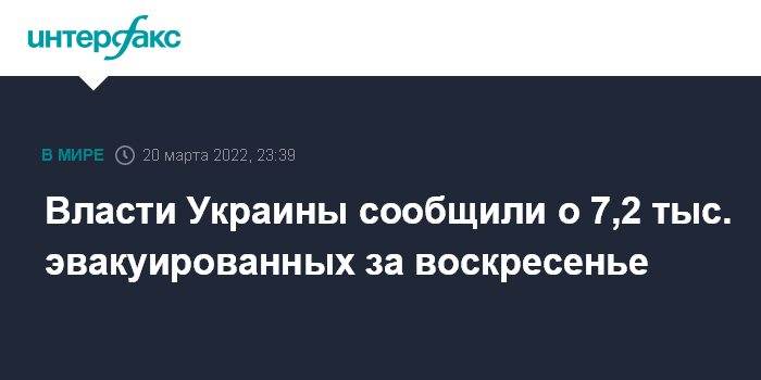 Москва. 20 марта. INTERFAX.RU - За воскресенье из семи гуманитарных коридоров сработали четыре, удалось эвакуировать 7 295 человек, сообщила вице-премьер Ирина Верещук.