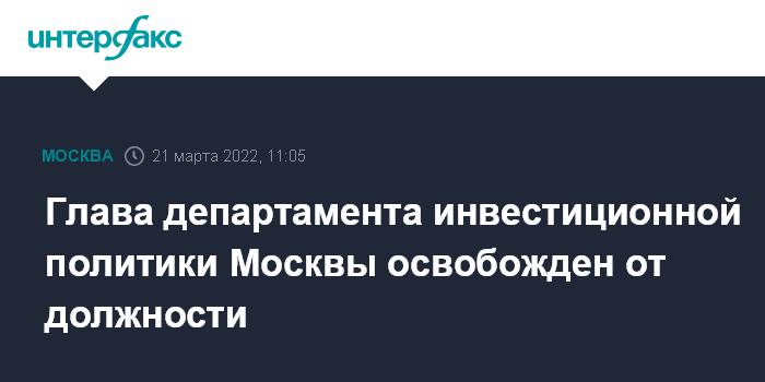 Глава департамента инвестиционной политики Москвы освобожден от должности