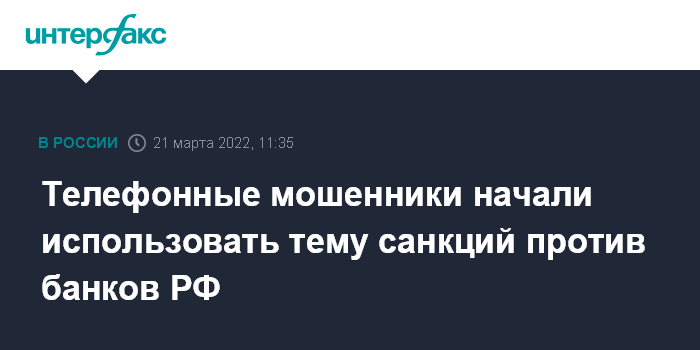 Москва. 21 марта. INTERFAX.RU - МВД РФ предупреждает о новых видах телефонных мошенничеств, связанных с темой санкций против российских банков.