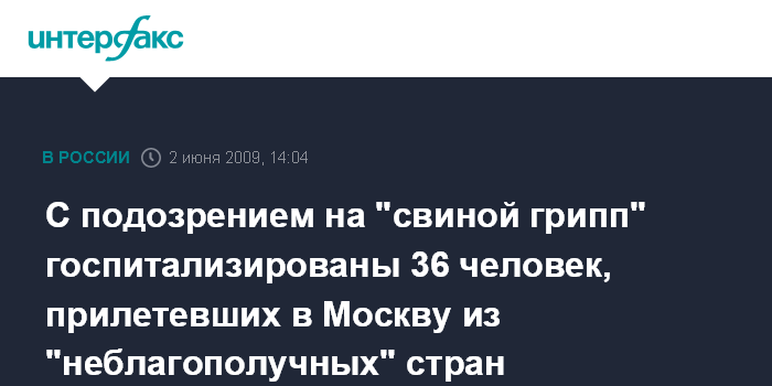 Москва. 2 июня. INTERFAX.RU - 36 человек, прилетевших в Москву из тех стран, где бушует свиной грипп, госпитализированы с подозрением на это заболевание.