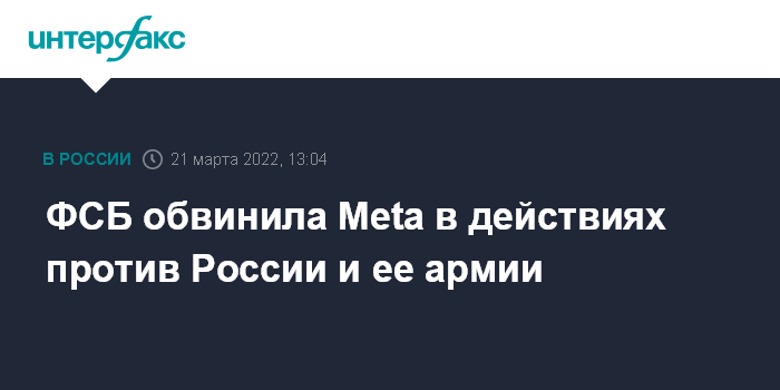 Первый замгенпрокурора в иске в интересах неопределенного круга лиц попросил суд запретить деятельность Meta Platforms за экстремизм. Meta владеет соцсетями Facebook, Instagram, а также мессенджером WhatsApp. В суде прокурор сказал, что не просит запретить Whatsapp, а только соцсети Facebook и Instagram и что использование гражданами этих соцсетей не должно расцениваться как экстремизм. Обе соцсети блокируются Роскомнадзором.