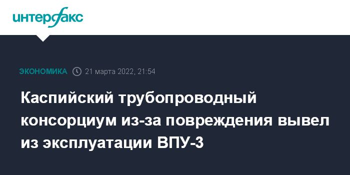 Каспийский трубопроводный консорциум из-за повреждения вывел из эксплуатации ВПУ-3