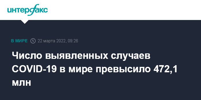 Число выявленных случаев COVID-19 в мире превысило 472,1 млн