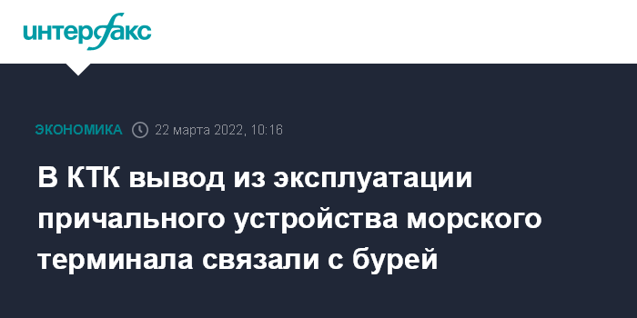 В КТК вывод из эксплуатации причального устройства морского терминала связали с бурей