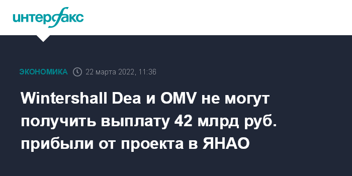 Wintershall Dea и OMV не могут получить выплату 42 млрд руб. прибыли от проекта в ЯНАО