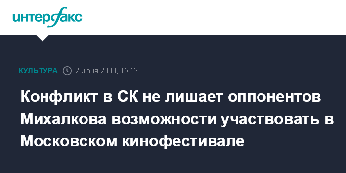 Москва. 2 июня. INTERFAX.RU - Конфликт между президентом Московского международного кинофестиваля (ММКФ), председателем Союза кинематографистов России Никиты Михалкова и некоторыми членами Союза не лишает оппонентов режиссера возможности участвовать в фестивале, заявляют организаторы.