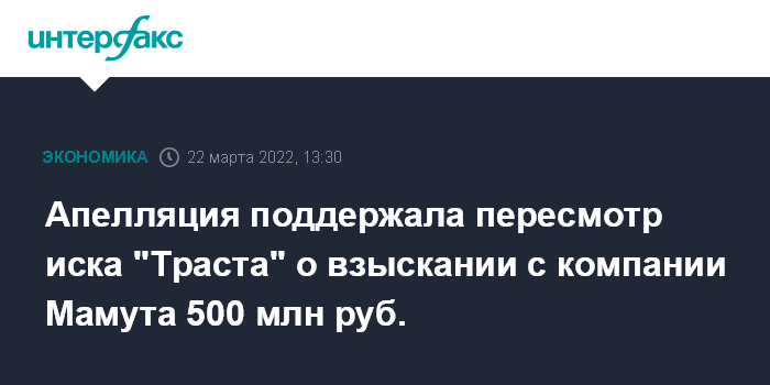 Апелляция поддержала пересмотр иска "Траста" о взыскании с компании Мамута 500 млн руб.