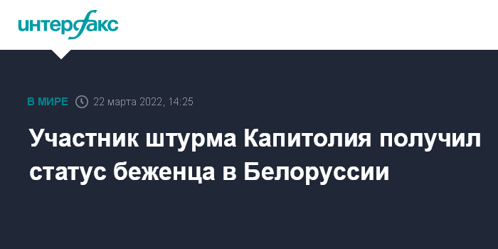 Москва. 22 марта. INTERFAX.RU - Гражданин США Эван Ньюман, обвиняемый у себя на родине по шести уголовным статьям за участие в штурме здания американского Конгресса в 2021 году, получил статус беженца в Белоруссии, сообщает госагентство БелТА во вторник.