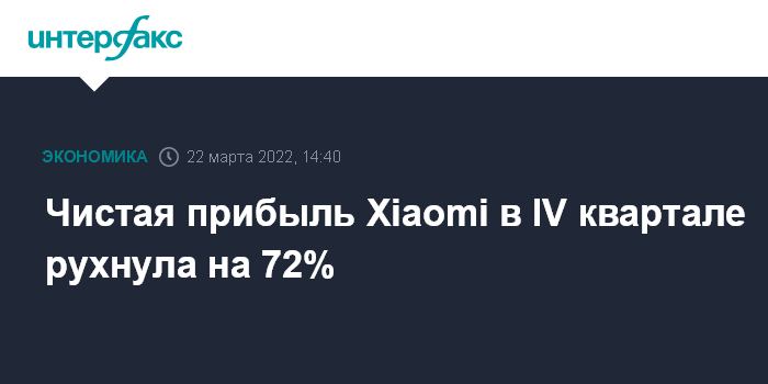 Чистая прибыль Xiaomi в IV квартале рухнула на 72%