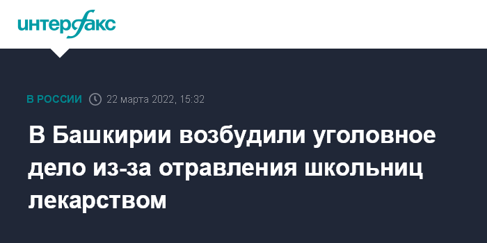 Москва. 22 марта. INTERFAX.RU - Следователи возбудили уголовное дело по факту отравления пяти школьниц лекарственным препаратом в лицее в башкирском Стерлитамаке, сообщила прокуратура республики во вторник.