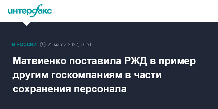 "Знаю, что сокращение численности штата в компании не ведётся. Это решение руководства РЖД, которое, я считаю, должно стать примером и для других наших крупных государственных компаний", - сказала спикер.
