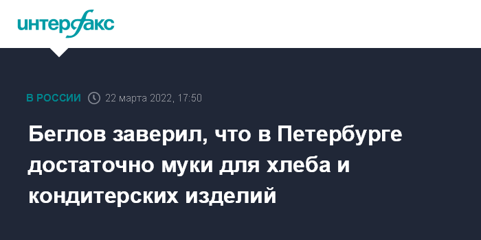 Глава города отметил, что оперативный (антикризисный) штаб ведет постоянный контроль за продовольственными запасами, их наличием и пополнением. Беглов напомнил, что у города уже есть опыт работы в период пандемии, когда были риски повышенного спроса на муку и хлебобулочные изделия. Благодаря оперативно принятым мерам дефицита и роста цен не было, заявили в пресс-службе.