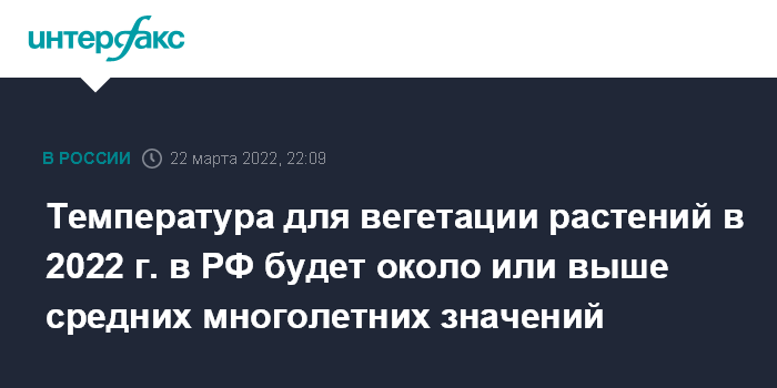 Температура для вегетации растений в 2022 г. в РФ будет около или выше средних многолетних значений