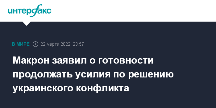Макрон заявил о готовности продолжать усилия по решению украинского конфликта