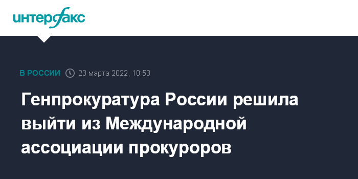 Москва. 23 марта. INTERFAX.RU - Генпрокурор РФ Игорь Краснов направил письмо генеральному секретарю Международной ассоциации прокуроров (МАП) Хану Мораалу о выходе российского надзорного ведомства из этой организации.