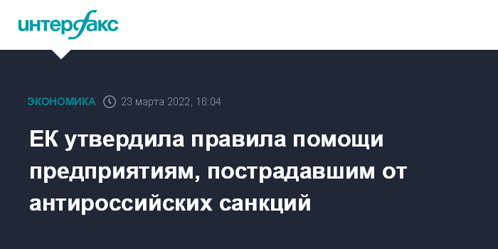ЕК утвердила правила помощи предприятиям, пострадавшим от антироссийских санкций
