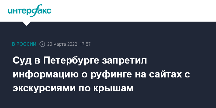 Москва. 23 марта. INTERFAX.RU - Октябрьский районный суд Петербурга запретил распространять информацию на сайтах, где предлагались экскурсии по крышам. Об этом сообщает в среду объединенная пресс-служба судов города.