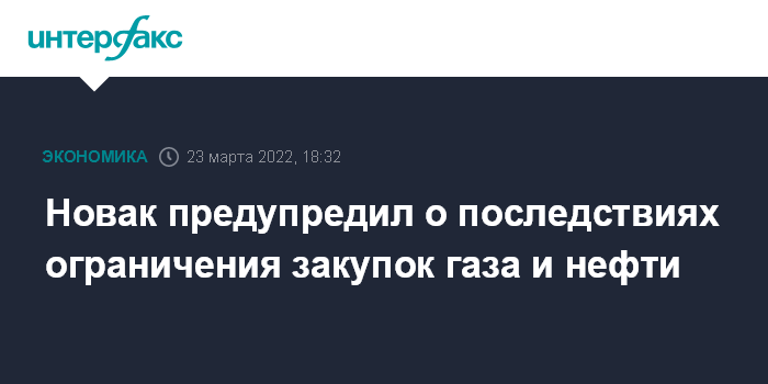 Москва. 23 марта. INTERFAX.RU -.Даже упоминание европейских и американских чиновников о возможности ограничить закупки нефти и газа в России вызывает резкий рост цен, заявил журналистам вице-премьер Александр Новак.
