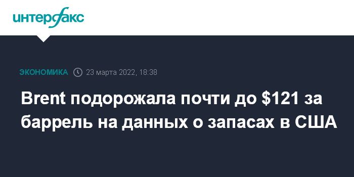Brent подорожала почти до $121 за баррель на данных о запасах в США