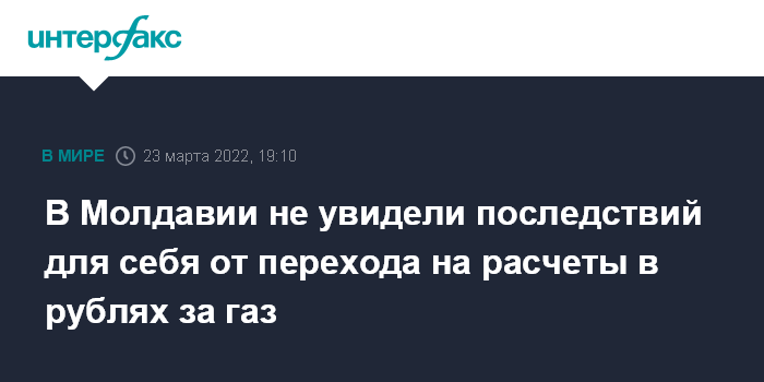 В Молдавии не увидели последствий для себя от перехода на расчеты в рублях за газ