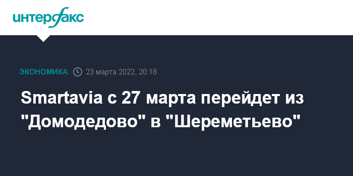 "С началом действия весенне-летнего расписания полетов мы меняем наш базовый аэропорт в Москве. Тем самым, все регулярные рейсы Smartavia начиная с 27 марта 2022 года будут выполняться из регионов в аэропорт "Шереметьево", терминал B (вместо аэропорта "Домодедово")", - говорится в сообщении компании.