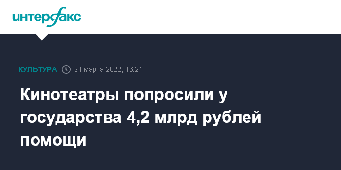 "Ассоциация владельцев кинотеатров обратилась к премьер-министру Михаилу Мишустину, в Минкультуры, в Минэкономразвития, и в другие структуры, которые отвечают за подобные вопросы, с просьбой выделить кинотеатрам 4,2 миллиарда рублей. Это та сумма, которая выделялась для поддержки отрасли в конце 2020 года, когда кинотеатры долго стояли в локдауне", - сказал Исаев на пресс-конференции.