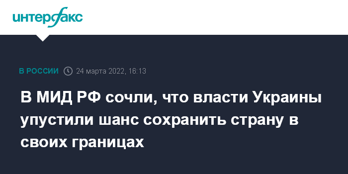В МИД РФ сочли, что власти Украины упустили шанс сохранить страну в своих границах