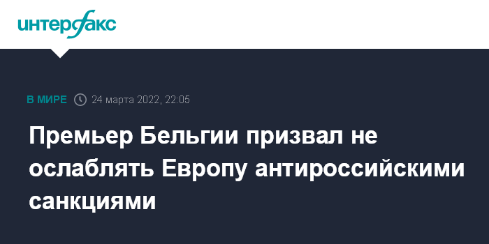 Премьер Бельгии призвал не ослаблять Европу антироссийскими санкциями