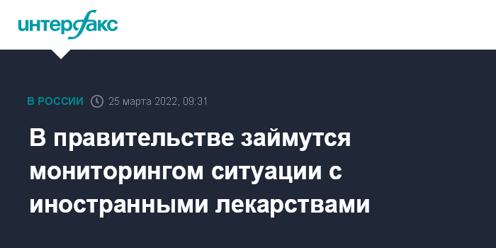 Москва. 25 марта. INTERFAX.RU - Оперативная рабочая группа правительства, созданная в период пандемии, подключилась к контролю за ситуацией с иностранными лекарствами из перечня жизненно необходимых и важнейших препаратов (ЖНВЛП), сообщила пресс-служба правительства.
