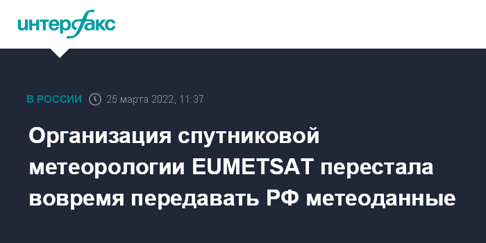 Организация спутниковой метеорологии EUMETSAT перестала вовремя передавать РФ метеоданные