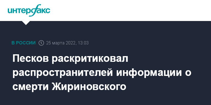 Песков раскритиковал распространителей информации о смерти Жириновского