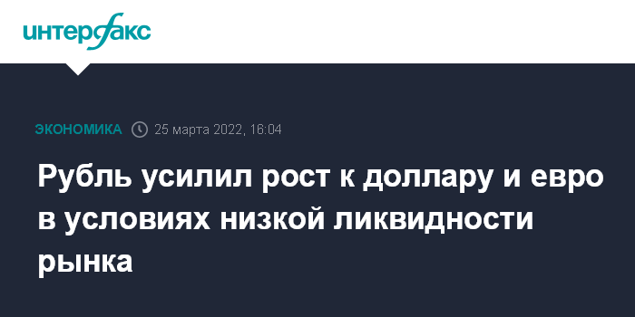Как отмечают эксперты "Интерфакс-ЦЭА", рубль активно укрепляется к доллару и евро на дневных торгах, так как участники рынка отыгрывают отсутствие новых санкций относительно российских энергоресурсов в условиях "тонкого" рынка и низкой ликвидности. Поддержку рублю также оказывает пик налогового периода марта.