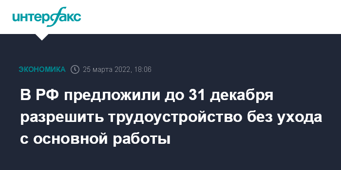 В РФ предложили до 31 декабря разрешить трудоустройство без ухода с основной работы