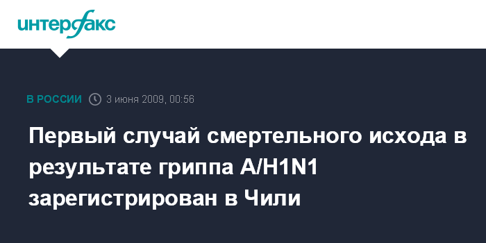 Москва. 3 июня. ИНТЕРФАКС - В Чили во вторник зарегистрирован факт смерти мужчины от гриппа A/H1N1.