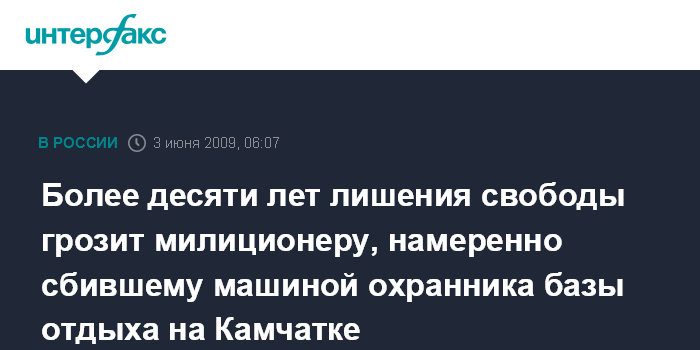 Более десяти лет лишения свободы грозит милиционеру, намеренно сбившему машиной охранника базы отдыха на Камчатке